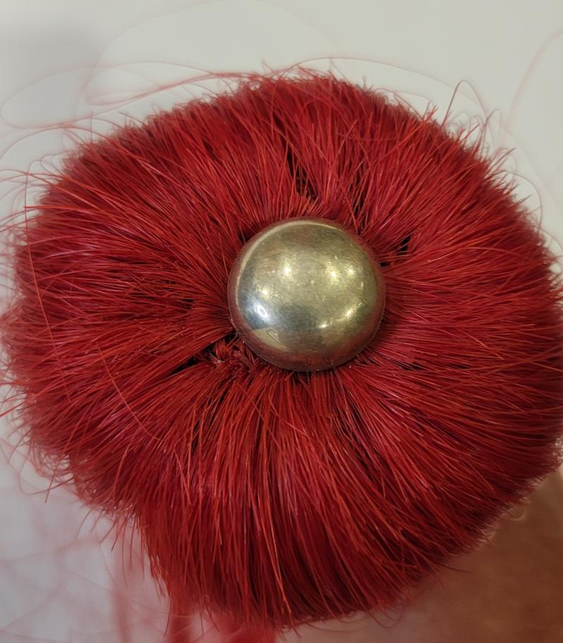 A fine example of a post WWII plume ideal to finish a RHG HRH EII Helmet. The hair appear to be synthetic and the rosette is replaced with a brass cap for cost savings. The post length is correct and is not cut down as some are. Good condition and can be used on any period helmet to finish the look if needed.